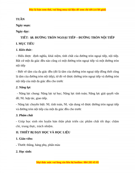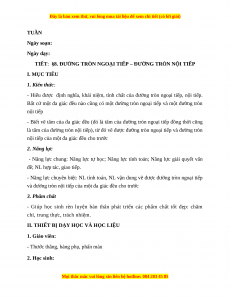 - Năng lực chuyên biệt: NL tính toán, NL vận dung vẽ được đường tròn ngoại tiếp