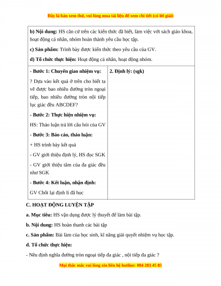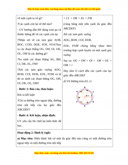 a) Mục tiêu: Hiểu được bất cứ một đa giác đều nào cũng có một đường tròn
