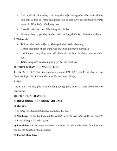 Giáo án Đường tròn Toán 9 Chân trời sáng tạo