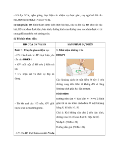 hỏi, HS xác định được tâm, bán kính, đường kính của đường tròn, xác định được ví trí