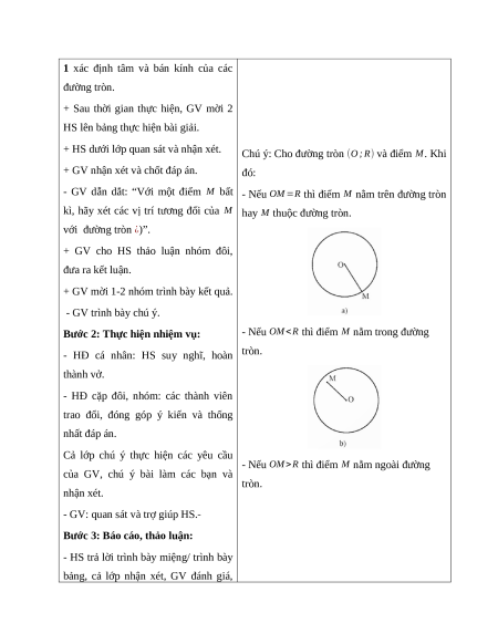 - Xác định được vị trí tương đối của điểm và đường tròn. b) Nội dung: