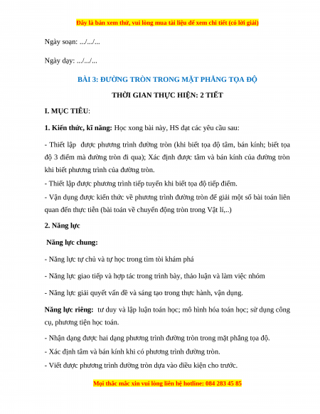 BÀI 3: ĐƯỜNG TRÒN TRONG MẶT PHẲNG TỌA ĐỘ
