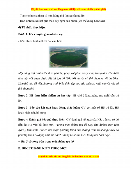dẫn dắt HS vào bài học mới: "Trong mặt phẳng tọa độ Oxy cho đường tròn tâm