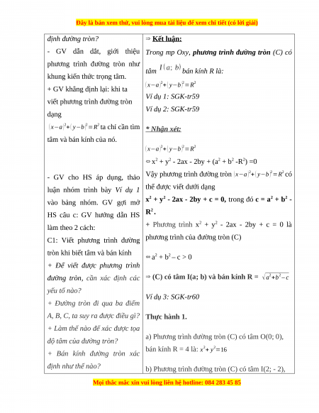 - Viết được phương trình đường tròn dựa vào điều kiện cho trước.