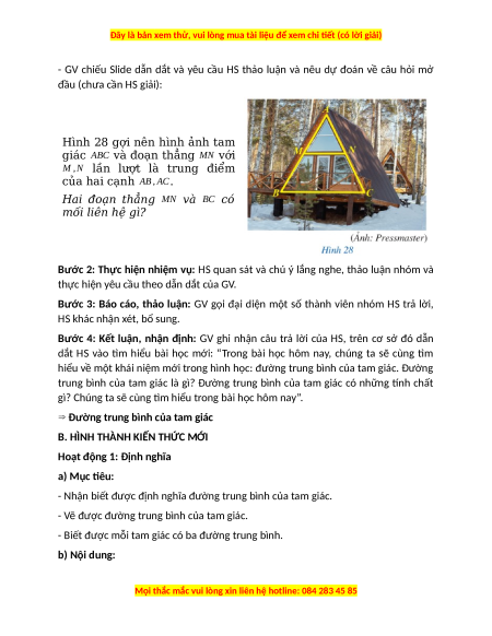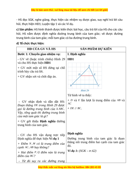 - Biết được mỗi tam giác có ba đường trung bình. b) Nội dung: