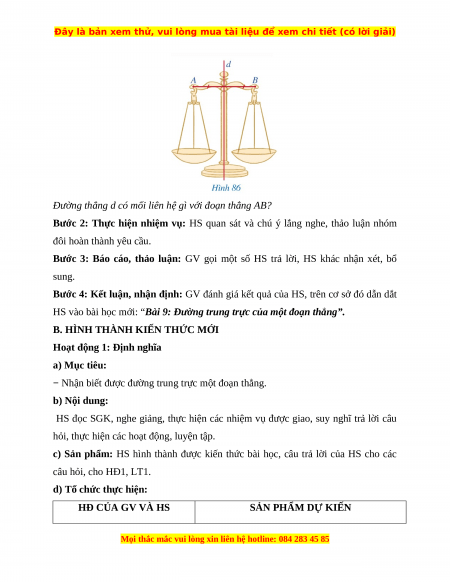 BÀI 9: ĐƯỜNG TRUNG TRỰC CỦA MỘT ĐOẠN THẲNG (2 TIẾT) I. MỤC TIÊU: