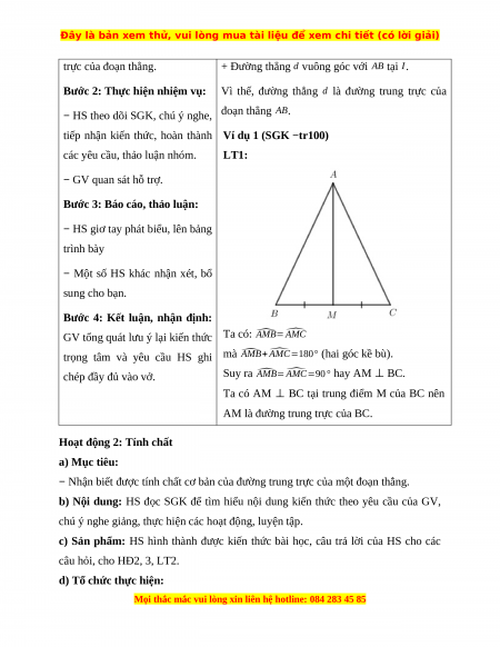 Giáo án Đường trung trực của một đoạn thẳng Toán 7 Cánh diều