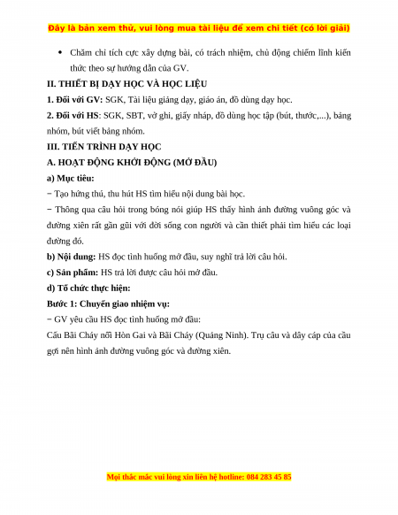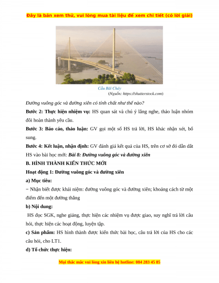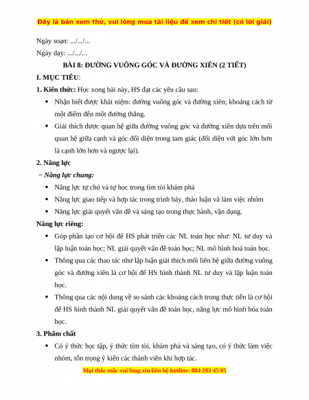 BÀI 8: ĐƯỜNG VUÔNG GÓC VÀ ĐƯỜNG XIÊN (2 TIẾT)