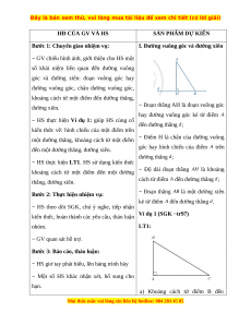 − Nhận biết được khái niệm: đường vuông góc và đường xiên; khoảng cách từ một