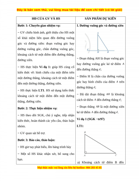 Giáo án Đường vuông góc và đường xiên Toán 7 Cánh diều