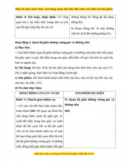 − Giải thích được quan hệ giữa đường vuông góc và đường xiên dựa trên mối quan