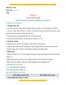 Ngày dạy: …/…/… Lớp: …. TUẦN 27 CÁC SỐ ĐẾN 10 000