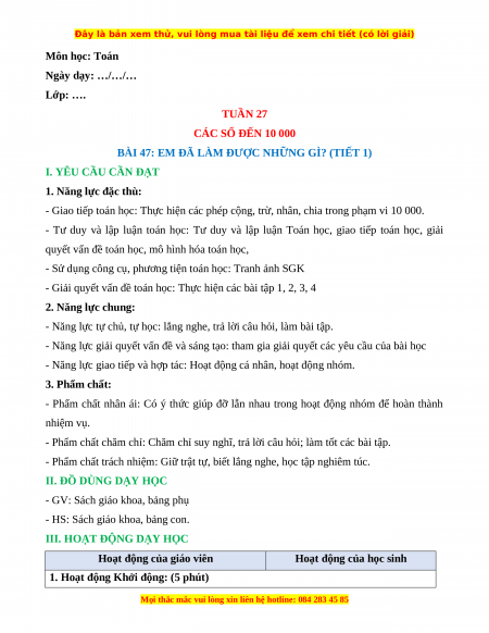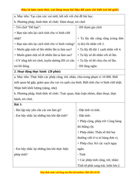 a. Mục tiêu: Thực hiện các phép cộng, trừ, nhân, chia trong phạm vi 10 000. Biết