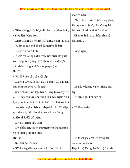 - Giải quyết vấn đề toán học: Thực hiện các bài tập 1, 2, 3, 4 2. Năng lực chung: