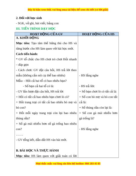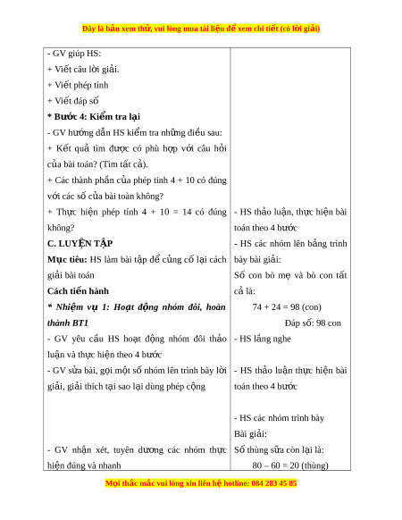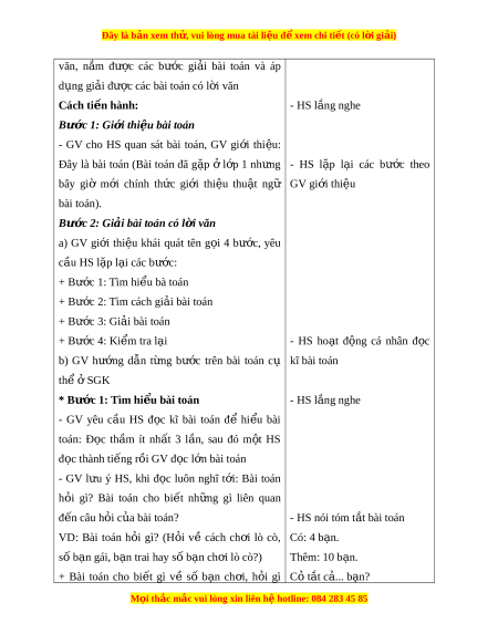 Đây là bản xem th , vu ử i lòng mua tài li u ệ đ xe ể m chi ti t (c ế ó l i ờ gi i ả ) văn, n m ắ đư c ợ các bư c ớ gi i ả bài toán và áp d ng gi ụ i ả đư c các ợ bài toán có l i ờ văn Cách ti n hà ế nh: - HS l ng nghe ắ Bước 1: Gi i ớ thi u bà ệ i toán