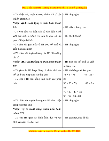 Đây là bản xem th , vu ử i lòng mua tài li u ệ đ xe ể m chi ti t (c ế ó l i ờ gi i ả ) - GV g i ọ m t ộ số HS trả l i ờ câu h i ỏ . Cả l p ớ nh n ậ xét - GV tuyên dư ng, khen ng ơ i ợ HS tr l ả i ờ đúng - HS làm vi c ệ nhóm đôi, th c ự Nhi m ệ vụ 2: Ho t ạ đ ng ộ