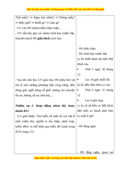 nhóm đôi, hoàn c) Xe đi từ b n ế xe Mỹ Đình thành BT2 đ n ế b n ế xe thành phố S n ơ - GV gi i ớ thi u: ệ Tìm hi u ể về m t ộ số con v t ậ ở La mất 8 giờ m t ộ vư n ờ thú, ngư i ờ ta thu th p, ậ phân lo i ạ , ki m ể đ m ế và thể hi n ệ qua bi u