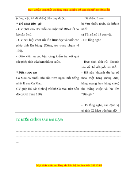 IV. ĐI U CH NH SAU BÀI D Y:Ề Ỉ Ạ