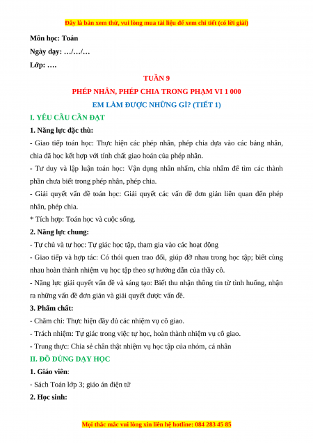 - Sách Toán lớp 3; giáo án điện tử 2. Học sinh: