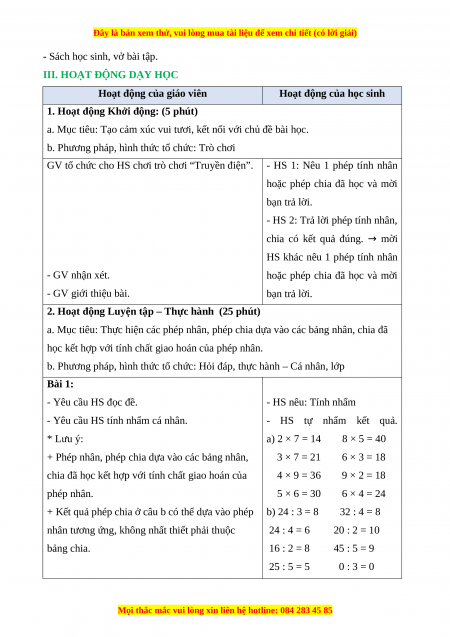 + Phép nhân, phép chia dựa vào các bảng nhân,