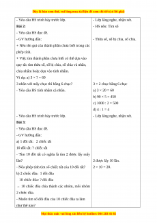 - Giao tiếp toán học: Thực hiện các phép nhân, phép chia dựa vào các bảng nhân,