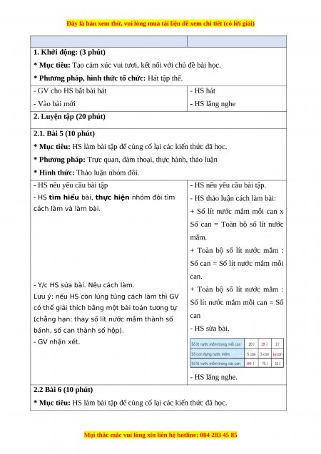 bánh, số can thành số hộp). - HS sửa bài. - GV nhận xét. - HS lắng nghe. 2.2 Bài 6 (10 phút)