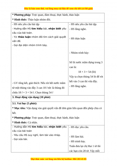 * Mục tiêu: Vận dụng vào giải quyết vấn đề đơn giản liên quan đến phép chia có hết.