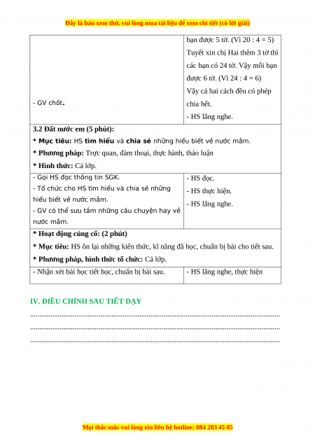 IV. ĐIỀU CHỈNH SAU TIẾT DẠY