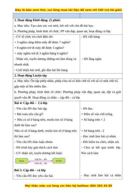- Tư duy và lập luận toán học: Thực hiện được nhân, chia các số có bốn chữ số cho số có một chữ số