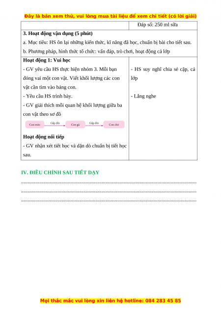 IV. ĐIỀU CHỈNH SAU TIẾT DẠY