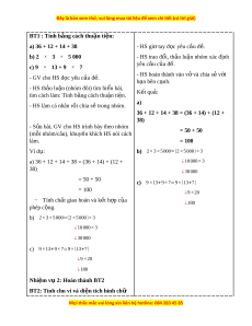 - V n d ng tính ch t giao hoán, tính ch t k t h p c a phép c ng và phép nhân đ ậ ụ ấ ấ ế ợ ủ ộ ể