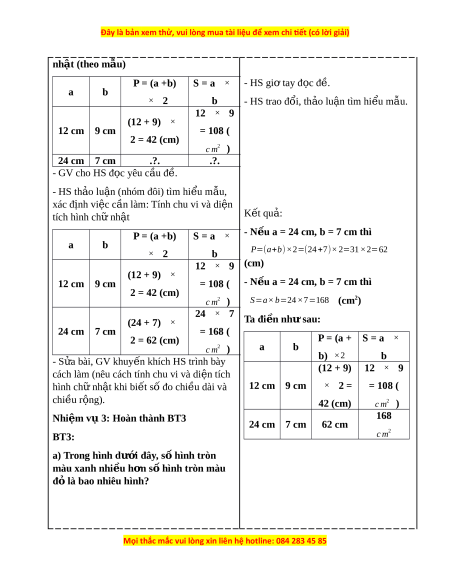 ch , chu vi và di n tích hình ch nh t; th c hi n đ c phép nhân m t s v i ữ ệ ữ ậ ự ệ ượ ộ ố ớ