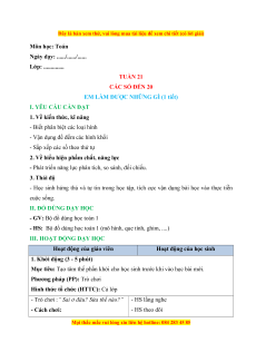 Ngày dạy: ....../....../...... Lớp: .............. TUẦN 21 CÁC SỐ ĐẾN 20