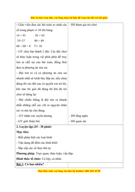 Hình thức tổ chức: Cả lớp, cá nhân Bài 1: Có bao nhiêu?