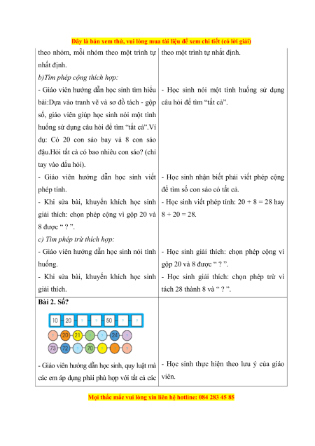 giải thích: chọn phép cộng vì gộp 20 và 8 + 20 = 28. 8 được “ ? ”.