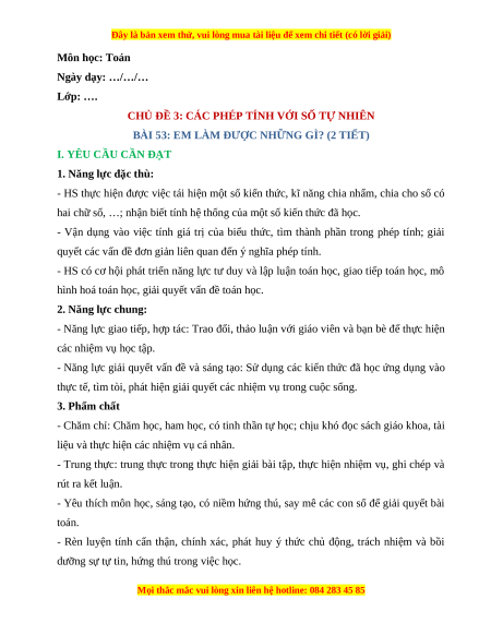 CHỦ ĐỀ 3: CÁC PHÉP TÍNH VỚI SỐ TỰ NHIÊN