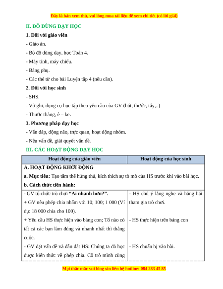 - Bộ đồ dùng dạy, học Toán 4. - Máy tính, máy chiếu. - Bảng phụ.