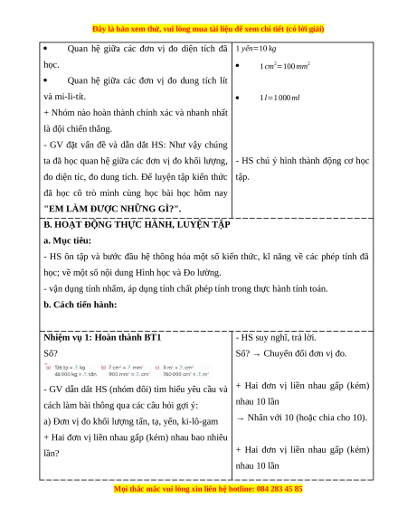 B. HOẠT ĐỘNG THỰC HÀNH, LUYỆN TẬP a. Mục tiêu:
