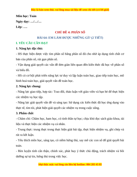 Bộ giáo án Toán lớp 4 Chân trời sáng tạo được cập nhật liên tục trong gói này từ nay đến hết tháng 3/2024.