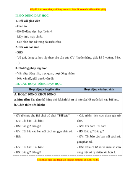 - GV: Tôi bảo các bạn nói cách rút gọn phân số. - HS: Bảo gì? Bảo gì? - HS: …