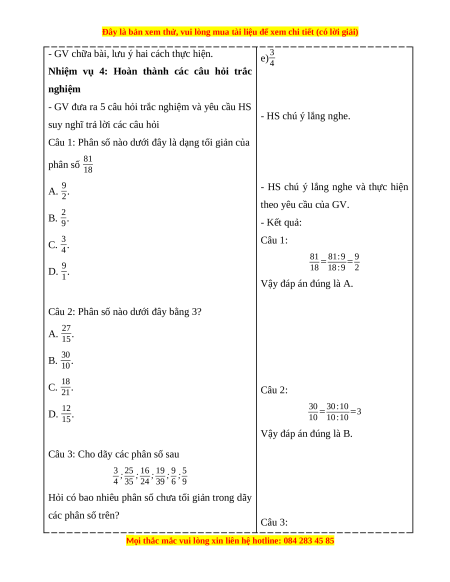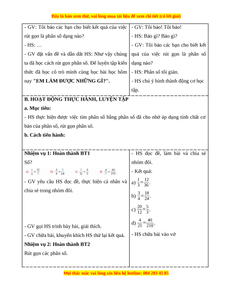 bản của phân số, rút gọn phân số. b. Cách tiến hành: