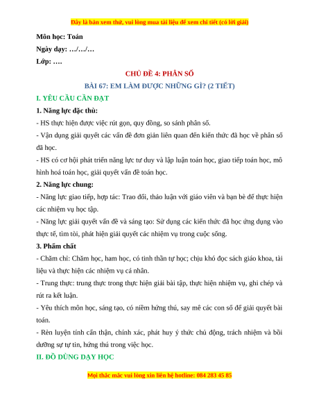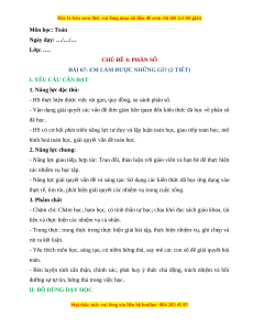 - Vận dụng giải quyết các vấn đề đơn giản liên quan đến kiến thức đã học về phân số đã học.