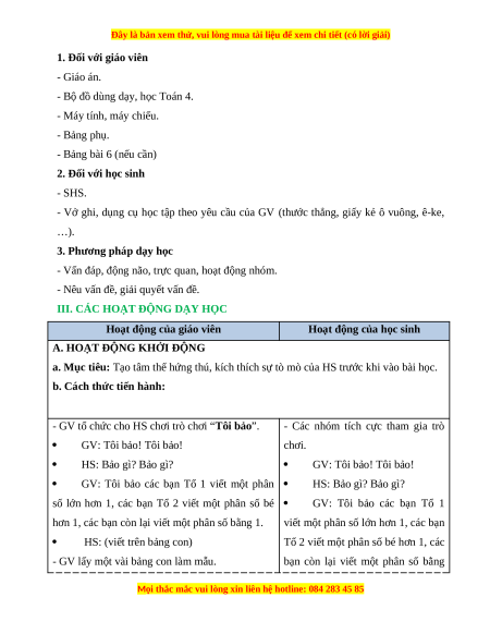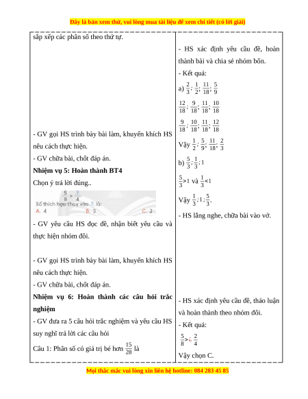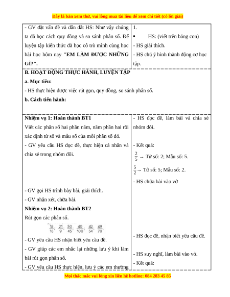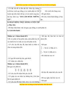 - HS thực hiện được việc rút gọn, quy đồng, so sánh phân số. b. Cách tiến hành: