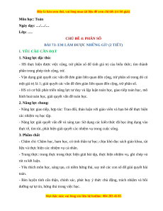 - Vận dụng giải quyết các vấn đề đơn giản liên quan đến cộng, trừ phân số trong đó có