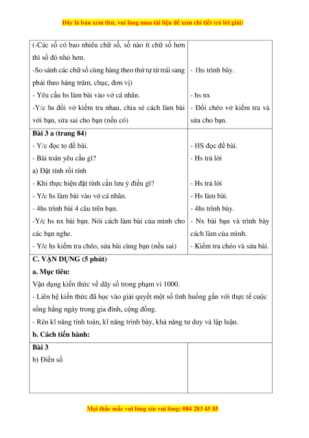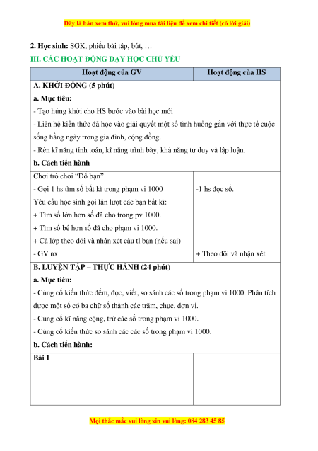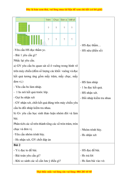 - Củng cố kiến thức đếm, đọc, viết, so sánh các số trong phạm vi 1000. Phân tích
