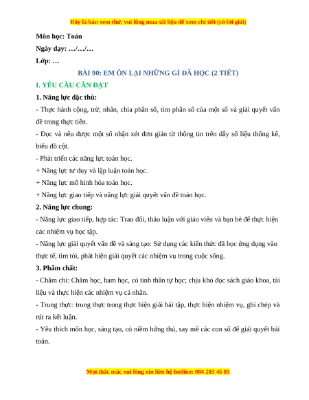 BÀI 90: EM ÔN LẠI NHỮNG GÌ ĐÃ HỌC (2 TIẾT)