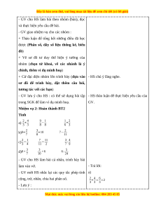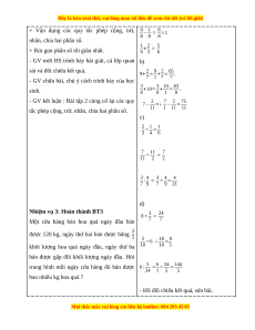 Nhiệm vụ 2: Hoàn thành BT2 Tính 2 9 1 a) + 4 − 1 + 2 3 3 8 8 6 3 3 b)9+ 2 +10 7− 2 7 8 11 2 1 7 11 3 4 c) × × : 3 4 11 2 7 9 3 3 5 d)8× ×6 6: 7 10 24