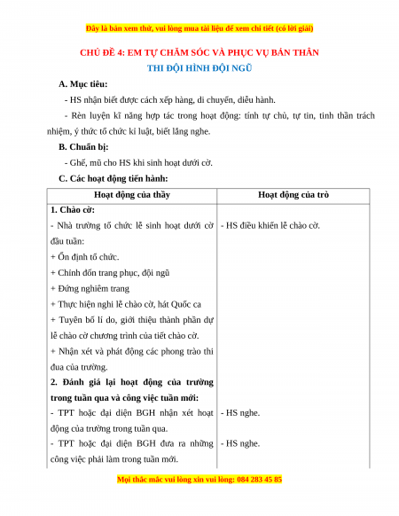 3. Kết nối với sinh hoạt theo chủ đề: Thi đội hình đội ngũ.