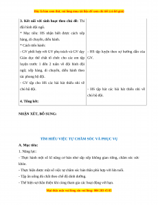 TÌM HIỂU VIỆC TỰ CHĂM SÓC VÀ PHỤC VỤ A. Mục tiêu: 1. Năng lực: