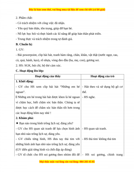 nhiệm, ý thức tổ chức kỉ luật, biết lắng nghe. B. Chuẩn bị: